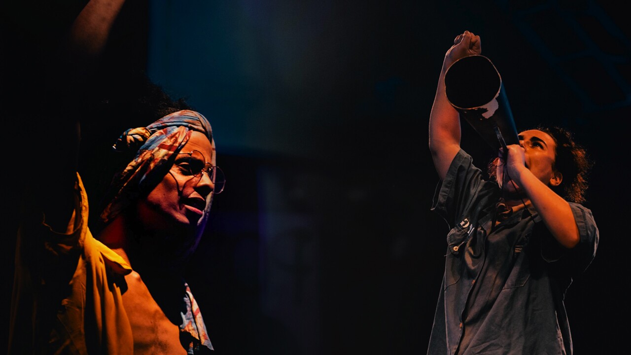 O texto cénico elabora uma (re)visão carnavalizada e uma outra narrativa periférica que explora os recursos cómicos e paródicos das contradições sócio históricas dos Brasis revolucionários. A reescrita do texto foi realizada a partir de um processo colaborativo em que o elenco tenciona as imagens presentes na dramaturgia de Boal com as referências de uma sociedade precarizada num capitalismo de guerrilha. Diante deste nosso tempo sombrio, este espetáculo pretende ser uma intervenção político-poética em que os afetos e a resistência são nossas armas revolucionárias.